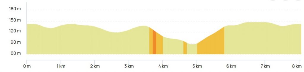 Dénivelé de 96 m soit 8.96 km d’effort avec 1 ravitaillement (eau et fruits secs).
